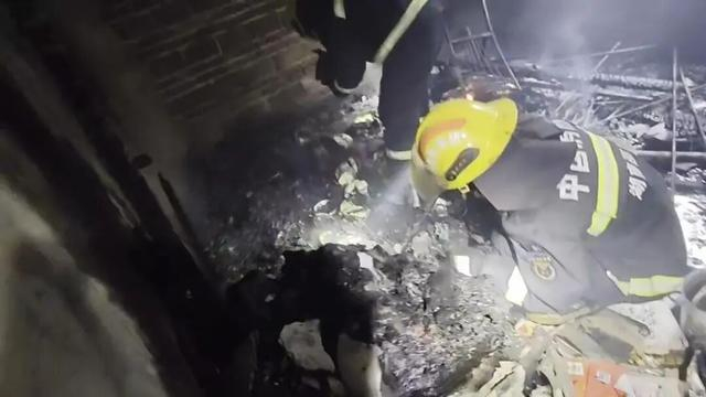 火灭后,消防员翻找现金。图源:湖南消防经过一个多小时的奋力扑救