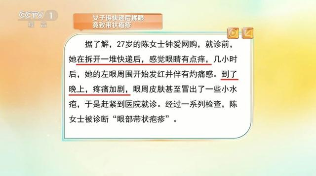 就像图中这位27岁的陈女士,她患上带状疱疹,并非由快递包装上的病毒直接感染所致,真正的病因是她体内早已潜伏的水痘带状疱疹病毒被激活。