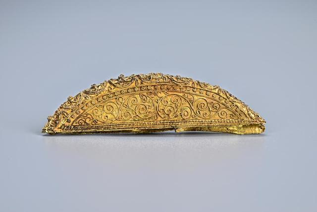 这是考古工作者在马三娘墓葬中发现的金梳背。陕西省考古研究院供图据陕西省考古研究院馆员史晟介绍,该墓随葬金银器多为女性发饰及盛贮器,墓中所出的银三足罐及银高足杯,器身以具有西域特色的葡萄忍冬纹为主纹,可见当时中原与西域地区交往密切。所出金银器与萨珊银币具有较高研究价值,为研究盛唐时期的中外文化交流及贸易往来,提供了新的实物资料。