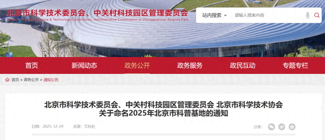 近日,北京市科学技术委员会、中关村科技园区管理委员会和北京市科学技术协会发布2025年度北京市科普基地名单,北京医学健康科普基地等60家北京市科普基地,命名周期为2025-2027年。