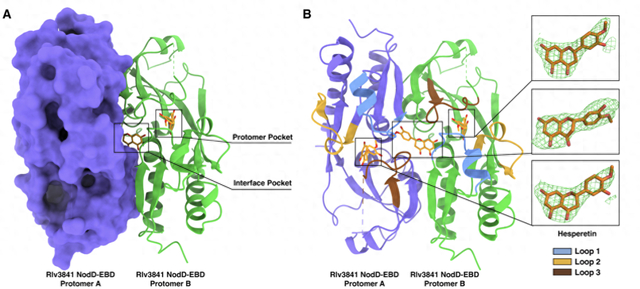 △豌豆根瘤菌NodD蛋白与橙皮素复合物的结构示意图研究人员发现,根瘤菌中的NodD蛋白如同一个精密的分子锁,其结合口袋的形状和关键氨基酸的排列,决定了它能被哪一种类黄酮所激活。正是这些微小的结构差异,构成了不同豆科植物与其专属根瘤菌伙伴之间识别的分子基础。