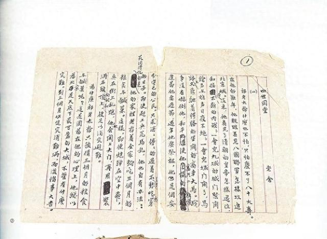 老舍《四世同堂》手稿 资料图片