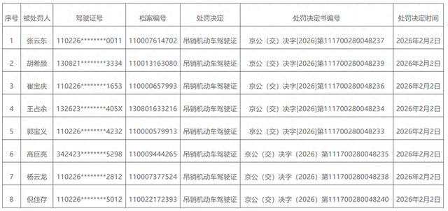 下列机动车驾驶人发生道路交通安全违法行为被本机关依法扣留驾驶证后,超过15日未接受处理,根据《中华人民共和国道路交通安全法》第一百一十条第二款的规定,本机关已依法作出处罚决定,现予公告送达: