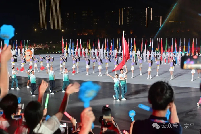 8月7日,成都世运会开幕式上,伴随着《茉莉花》的动人旋律,东道主中国代表团入场。全场沸腾!旗手是男子技巧运动员史经纬、女子轮滑运动员郭丹。金瑶摄