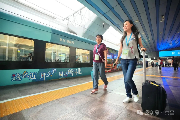 7月9日上午,京津冀首列观光旅游列车——“星光·燕赵号”从北京站首发,旅客乘坐列车欣赏移动的文化风景。列车涂装极具特色。 安旭东摄