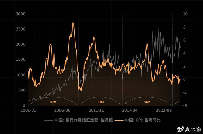 从宏观经济的角度看,对外贸易仍然主导了中国内部的经济周期。从2001年中国加入WTO(这非常重要)起,中国企业的对外结汇支撑起了内部消费需求的三轮显著周期。
