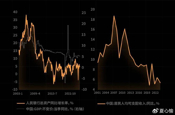 人是一种基于预期而生存的动物,经济爆发时代的记忆会长期留存,并成为未来预期的一部分。如下图所示,2000年代初基于全球化、人口红利,中国社会GDP以及资产负债表高速发展,人均收入同比增速在2007年创下18.74%的历史新高。(注:数据来源见下)