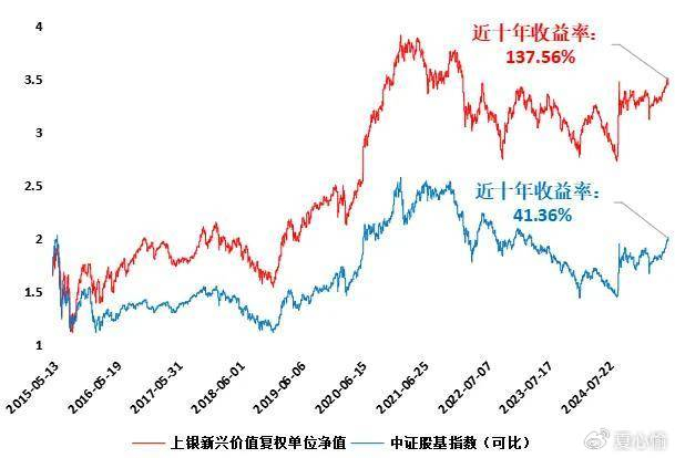 以其管理以来近十年的业绩为例,上银新兴价值累计收益率达137.56%,年化收益率达9.03%,远超同期全市场股票基金指数。(注:数据来源ifind,统计区间2015/08/01-2025/07/31)
