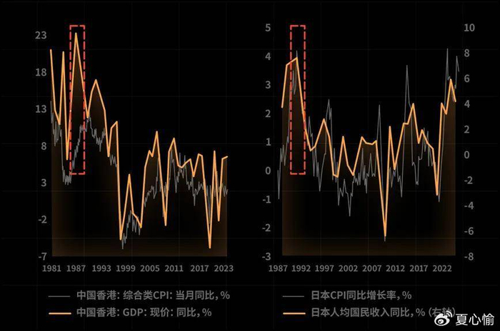 香港CPI与GDP长期变化趋势(左图)