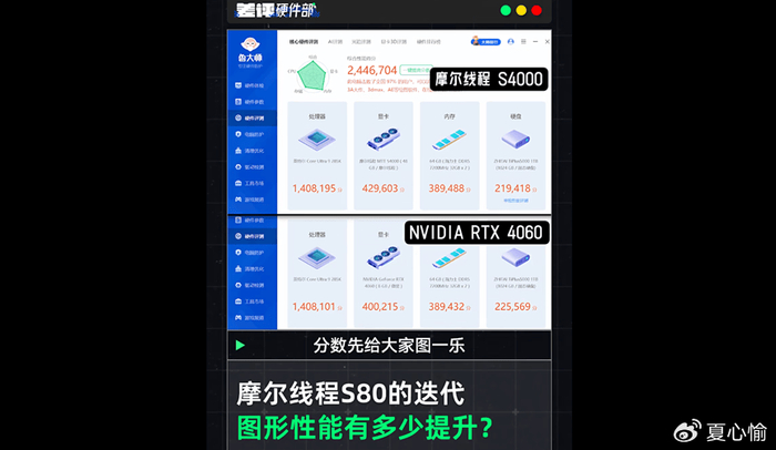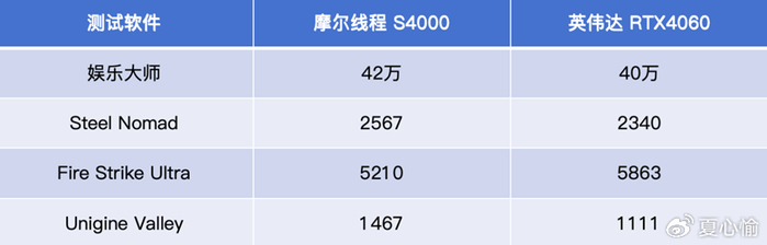 近两年摩尔集中精力在搞AI智算卡和千卡万卡中心,同时,消费级显卡产品线却迟迟没有更新。S80至今已发布两年多,每个月还在更新驱动,支持DirectX11,性能和适配有提升,号称“养成型国产显卡”。所以很早之前就有S90的呼声,但貌似摩尔充耳不闻。一些灵通的渠道已侧面证实,两年前的AI智算卡S4000在图形跑分上就超过了英伟达4060。自媒体“差评”不知从哪搞来了一块S4000做了实测,跑分如图所示自己看。这说明摩尔不是没有迭代消费显卡的能力,而是一种商业选择。既然新GPU架构要发了,摩尔在MDC上会不会推出S90甚至S100?20号答案揭晓。