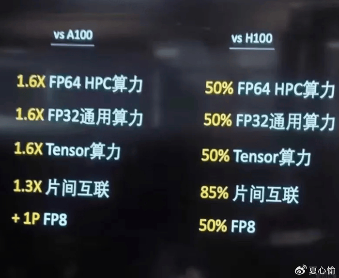 Rednote上有灵通人士甚至拿到了性能参数,S5000综合性能全面超越A100,和H100相比,账面参数仅为H100的50%,但部分性能和H100持平。