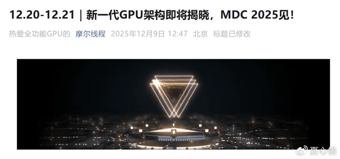 摩尔线程最近热度太高了,上市后估值起飞,然后是本周末要开MDC开发者大会。