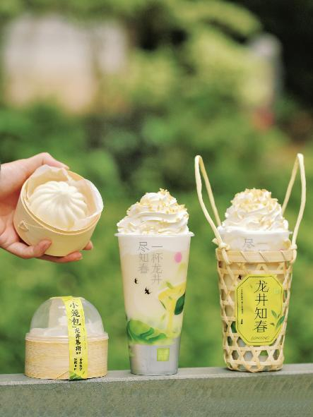 此外,围绕龙井特饮,奈雪还特别制作了竹篓杯套、竹蒸笼等水乡竹编工艺品,周边均融合竹叶、西湖等江南元素,为消费者呈现一场立体的江南品春茗体验。