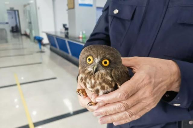 民警将鹰鸮送往圭峰山动物园