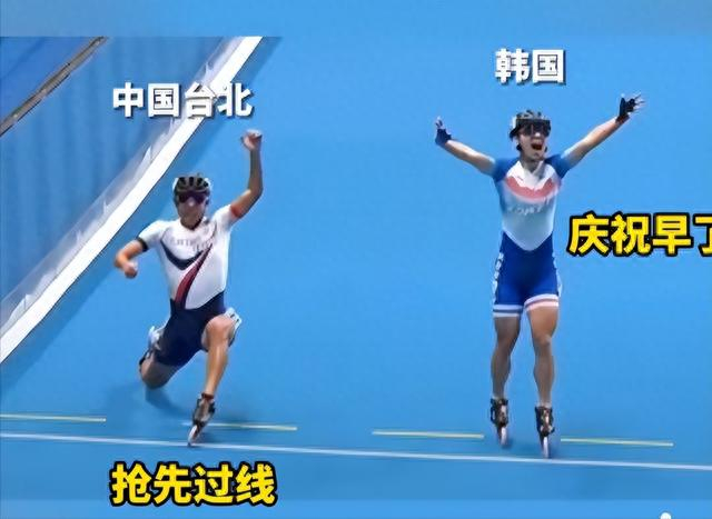 据@华商报 消息,10月2日,杭州亚运会男子速度轮滑场地赛3000米接力赛决赛,韩国选手郑喆元在最后冲刺阶段并未做出积极压线动作,而是早早起身欢呼庆贺,中国台北队靠着选手黄玉霖0.01秒的奇迹压线,以4分05秒692,惊险胜过韩国的4分05秒702顺利夺金,喜迎本届亚运会第11金。