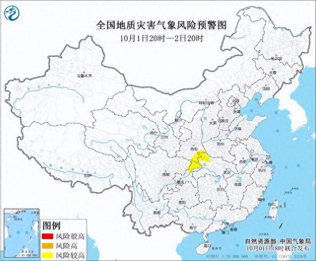 自然资源部与中国气象局10月1日18时联合发布地质灾害气象风险预警:预计,10月1日20时至2日20时,湖北西部、重庆中北部、四川东北部、陕西东南部等地部分地区发生地质灾害的气象风险较高(黄色预警)。请当地居民注意防范降水引发的地质灾害,尤其是地质灾害隐患点附近区域。