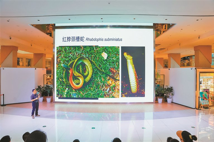▲潘虎君向市民普及深圳蛇类概况。 受访单位供图深圳新闻网2023年10月30日讯(深圳晚报记者 魏羽辰) 近日,由深圳市规划和自然资源局主办,深圳晚报社承办的“山海连城·自然深圳”市民讲堂第七期开讲,林业工程师、中南林业大学动物学硕士潘虎君作为嘉宾,以《身边的蛇类与我们的生活》为主题向市民作演讲,科普深圳的蛇类概况、遇蛇的应对处置方法等知识。