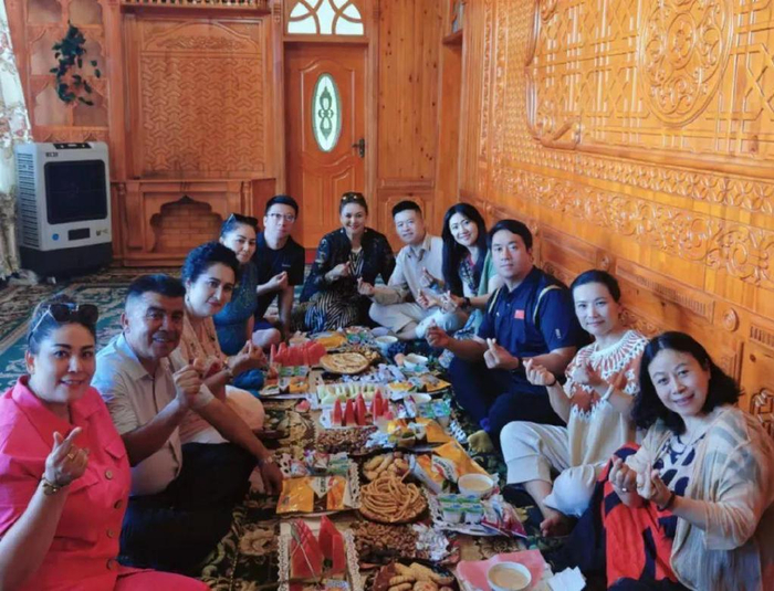 期间,交流团受邀参加维吾尔族人民的传统婚礼,与维吾尔族同胞共同庆祝喜庆时刻。婚礼现场,交流团对新人送上美好祝福,张伟副主席受邀演唱《我爱你中国》,引起全场共鸣。