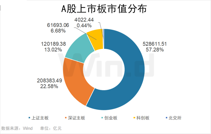 截至2024年三季度末,上证主板上市公司市值合计528611.51亿元,占比达到57.28%;深证主板上市公司市值合计为208383.49亿元,占比为22.58%。