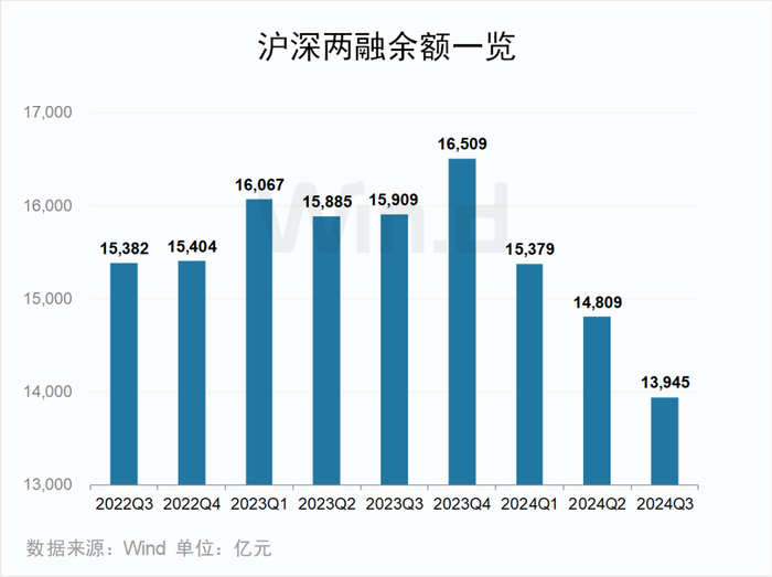 截至2024年三季度末,A股两融余额报13945亿元,较二季度末下降864亿元,较年初下降2564亿元。