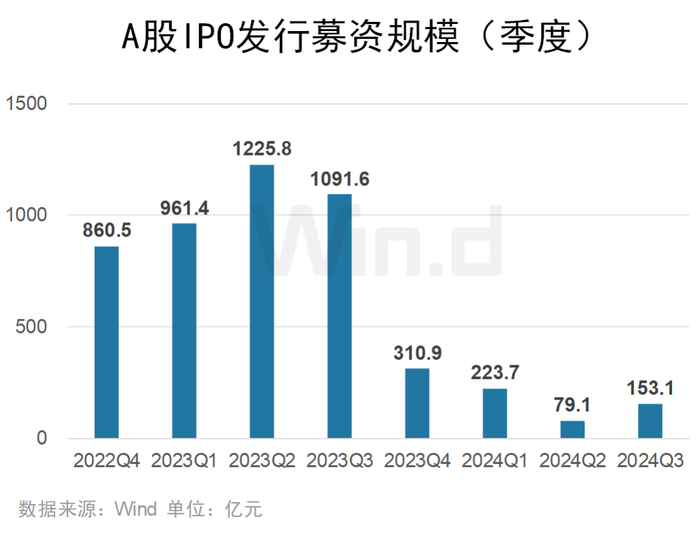 2024年前三季度,A股市场IPO募资规模为455.9亿元,其中三季度IPO募资153.1亿元,环比上升93.55%。