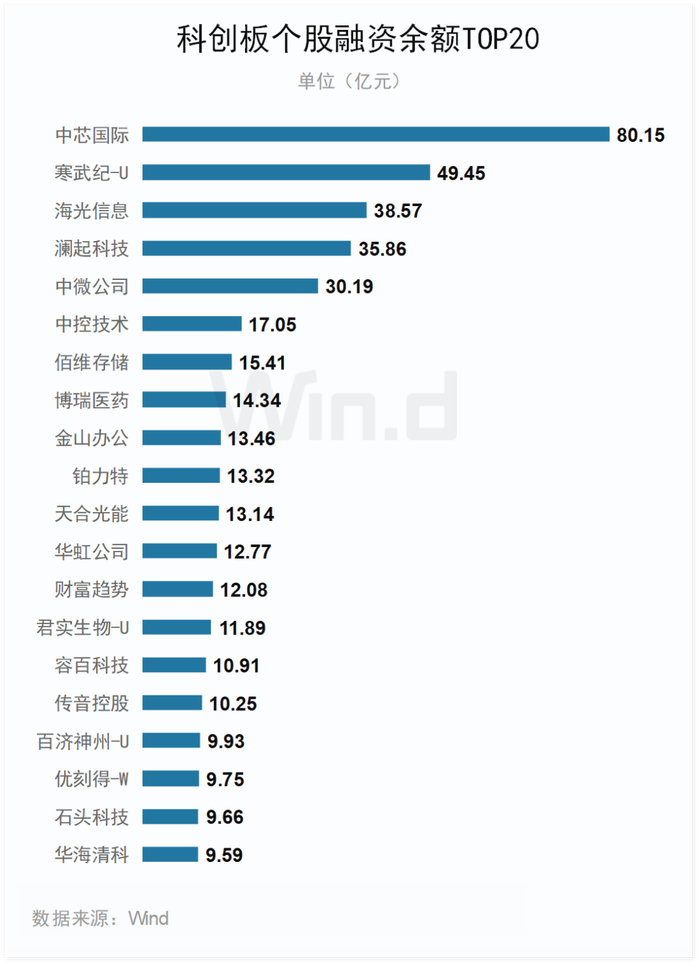 2025年一季度末,中芯国际融资余额达80.15亿元位居首位,其次寒武纪-U、海光信息、澜起科技、中微公司等15家公司融资余额均超过10亿元。