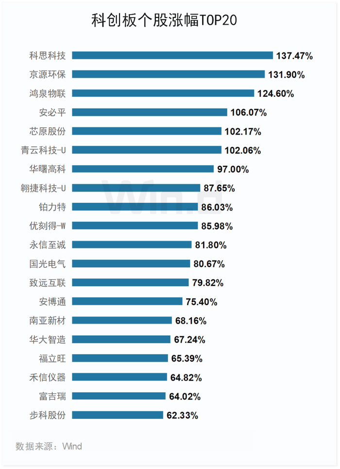 剔除新股上市首日巨大波动后,2025年一季度科思科技以137.47%的涨幅位居首位,其次京源环保、鸿泉物联、安必平等5家涨幅也超过100%。
