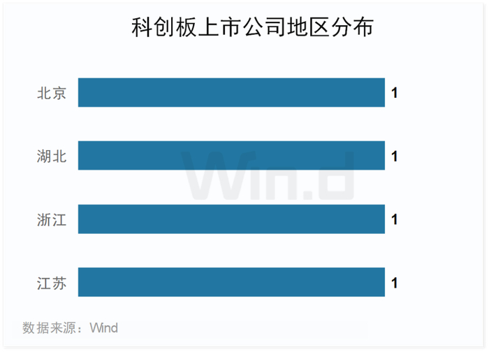 2025年一季度科创板发行的公司来自北京、湖北、浙江和江苏,各有1家。