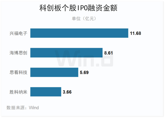 2025年一季度兴福电子以IPO融资11.68亿元居首,海博思创、思看科技和胜科纳米融资分别为8.61亿元、5.69亿元和3.66亿元。