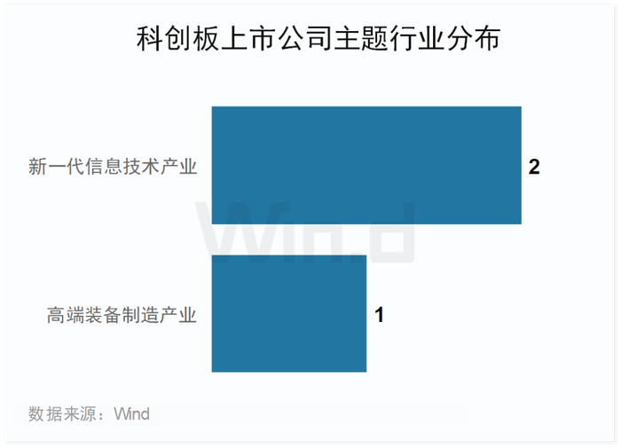 2025年一季度科创板发行的公司主要分布在2个Wind科创主题行业中,新一代信息技术产业以2家领先,其次高端装备制造产业有1家。