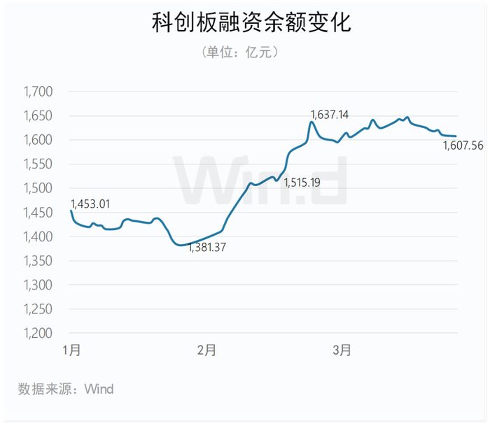 2025年一季度末,科创板融资余额达1607.56亿元,较年初1453.01亿元增长154.54亿元。