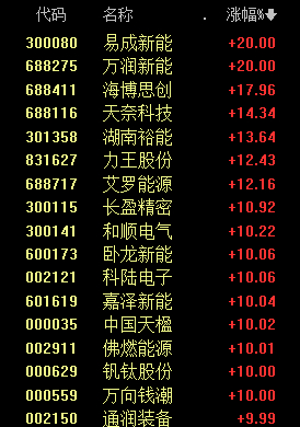 储能板块早盘表现活跃,易成新能收获20%幅度涨停,卧龙新能、科陆电子、嘉泽新能等同样涨停。