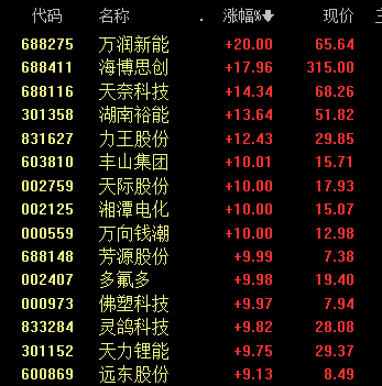 近期,固态电池等新能源主线持续升温,承接前期AI主线的资金人气。早盘,固态电池板块再度领涨,万润新能收获20%幅度涨停,丰山集团、天际股份、万向钱潮、湘潭电化等均收获涨停。