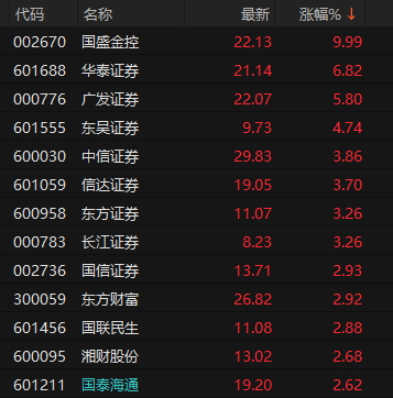 券商板块早盘涨幅排名