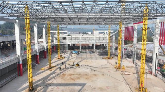 1月9日,成渝中线高铁安岳站房屋盖钢结构网架顺利完成整体顶升,标志着安岳站建设正式迈入装饰装修阶段,为成渝中线高铁全线按期开通筑牢坚实基础。