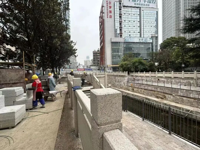 历史城垣步道节点景观施工现场据悉,截至目前,历史城垣步道项目总体建设进度为90%。环西小学文化墙、飞山街口袋公园精神堡垒等均已完工。六广门新建围墙、公交站景观节点、万科99号外景观节点、银杏步道、人民大道地面铺装和普陀路、红边门地面铺装正紧锣密鼓开展中。步道完工后,68处文保单位将连点成线、串珠成链,既完善了“筑城核心”的公共服务功能,也为云岩增添了一张兼具历史底蕴与现代活力的文旅新名片。