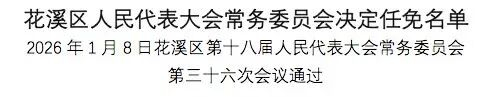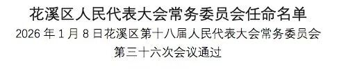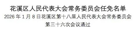 1月8日,花溪区第十八届人民代表大会常务委员会第三十六次会议通过一批人事事项。
