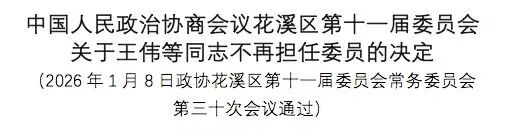 王伟、方正、朱春婷、吴笛、何敏、张君学、程筑玮同志不再担任政协花溪区第十一届委员会委员。