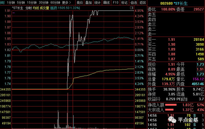 今日*st长生的分时图: