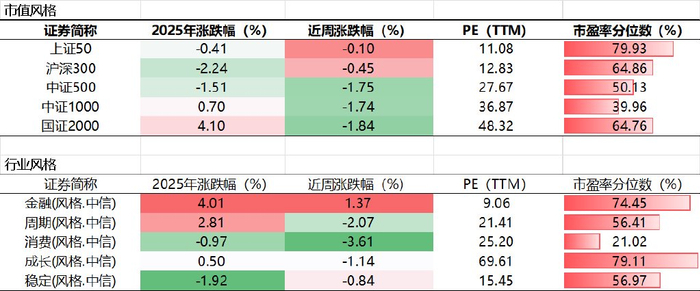 A股整体下探,大盘风格明显优于小盘风格,国证2000跌幅最大为-1.84%。