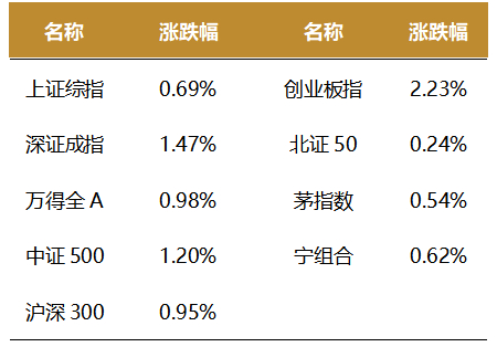 截至收盘,今日上证指数收于3917.36点,上涨0.69%,成交额为0.79万亿元;深证成指上涨1.47%,成交额为1.07万亿元;创业板指上涨2.23%。今日两市上涨个股数量为2983只,下跌个股数为2261只。