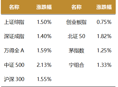 截至收盘,今日上证指数收于4083.67点,上涨1.50%,成交额为1.18万亿元;深证成指上涨1.40%,成交额为1.63万亿元;创业板指上涨0.75%。今日两市上涨个股数量为4101只,下跌个股数为1218只。