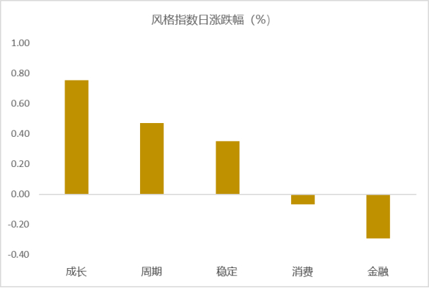 从风格指数上来看,今日多数风格表现不错,其中成长风格的个股表现最好,金融风格的个股表现最弱。近期风格转换较为明显。