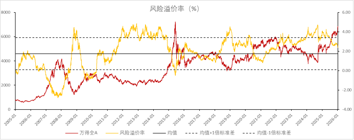 (注:数据更新至前一交易日,风险溢价率越大,表明配置股票的性价比越高;反之,则配置债券的性价比越高)