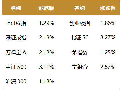 截至收盘,今日上证指数收于4067.74点,上涨1.29%,成交额为1.11万亿元;深证成指上涨2.19%,成交额为1.43万亿元;创业板指上涨1.86%。今日两市上涨个股数量为4851只,下跌个股数为529只。