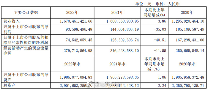 4月25日,同庆楼发布2022年年度报告,报告期内公司实现营业收入约16.7亿元,同比增长3.86%;实现归属于上市公司股东的净利润约9359.85万元,同比下降35.03%。