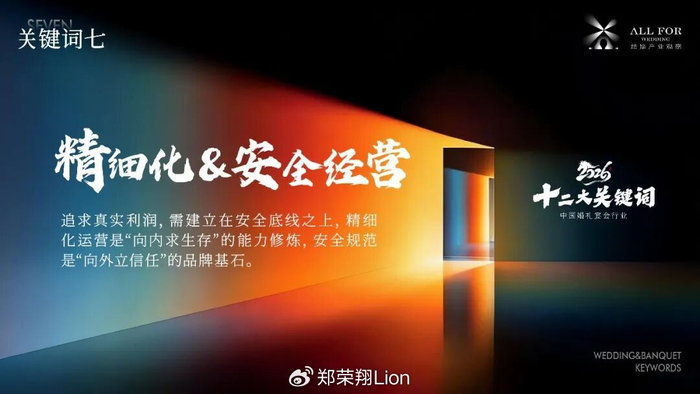但我们必须清醒认知:婚礼宴会行业的暴利时代结束,未来是“精耕细作、细水长流”的时代。行业已正式步入慢增长周期,粗放式扩张的红利彻底消退,唯有主动求变、迭代升级,方能避免被市场淘汰。