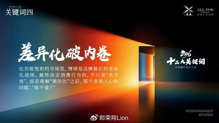 年轻人的消费决策,正在从“我需要这个功能”转向“我需要这种感觉”。当下新人要的不仅是“一顿饭、一场仪式”,更是一段值得铭记的情感体验。是否能在流程、服务、场景甚至文化内涵上做出记忆点,决定了品牌能否跳出价格战。