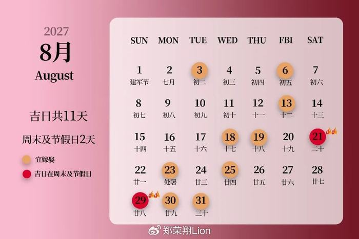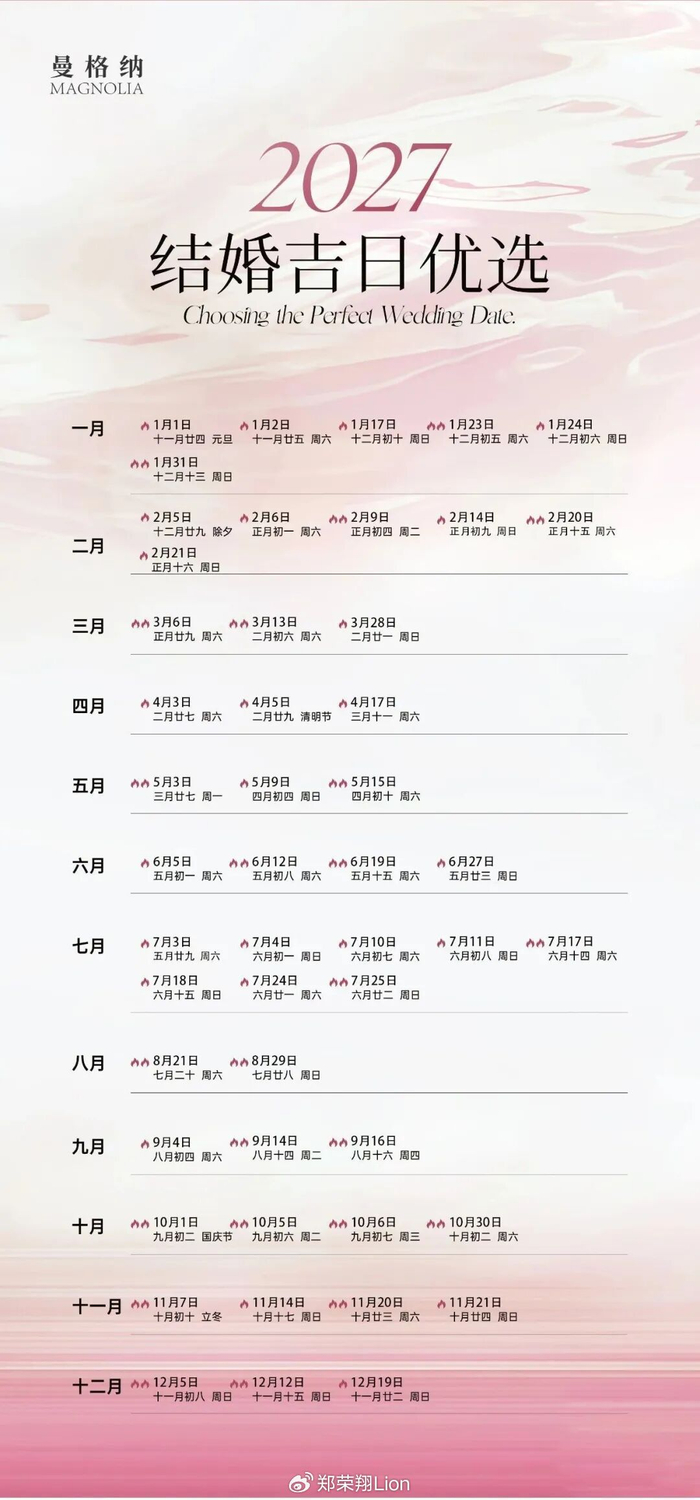 2027年的好日子,已经开始预约!结婚的「超大好日子」,赶紧收藏起来吧~