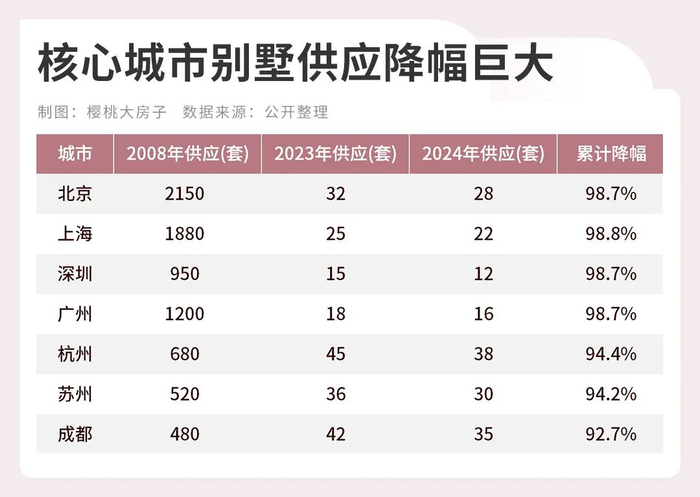 核心城市别墅产品新增供应,15年暴跌90%+。